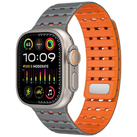 Cinturino Magnetico Traspirante Per Apple Watch Serie 1-9 Generazioni 42/44/45 Mm Grey+orange