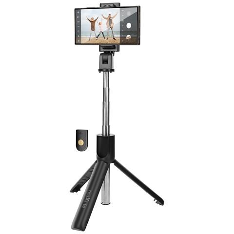 Asta Per Selfie Per Smartphone Bluetooth + Treppiede A 69 Cm, Nero