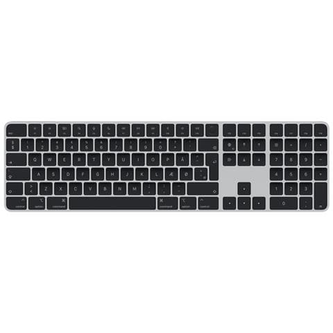 Apple Magic Keyboard con Touch ID e tastierino numerico per Mac con chip - Danese - Tasti neri. Fattore di forma tastiera: Full-size (100%). Stile tastiera: Dritto. Tecnologia di connessione: Con cavo e senza cavo, Interfaccia dispositivo: USB + Bluetooth, Struttura tastiera: QWERTY, Utilizzo raccomandato: Universale. Colore del prodotto: Nero
