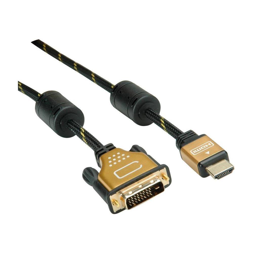 Roline 11.04.5891 2m HDMI DVI Nero, Oro cavo e adattatore video
