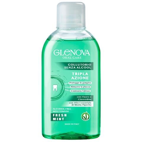 Glenova collutorio senza alcool fresh mint con antibatterico vegano 400 ml collutorio agli oli essenziali, con fluoro e clorexidina. ideale per un’igiene orale completa: - contrasta l’alito cattivo; - rimuove la placca; - previene le carie; - protegge le gengive. formato: 400 ml.