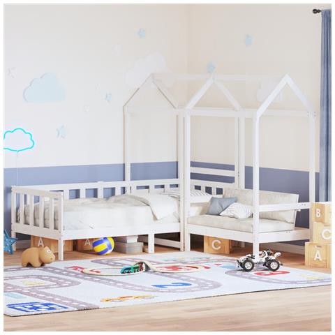 Set Dormeuse E Panca Con Tetto Bianco 90x190cm Massello Pino