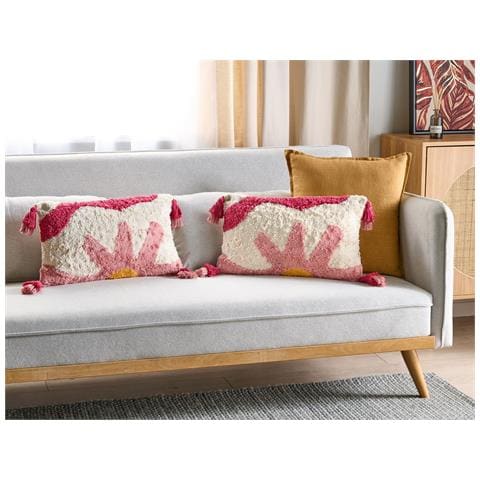 Set Di 2 Cuscini Actaea Cotone 30 X 50 Cm Rosa Trama Floreale