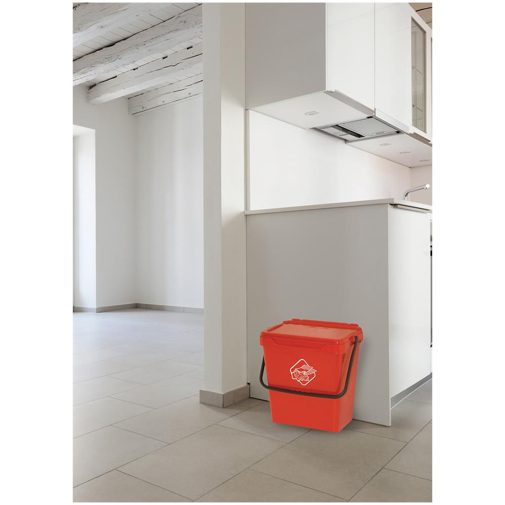 Cassonetto per raccolta differenziata - contenitore con manico e coperchio per la raccolta differenziata, interamente di colore rosso. struttura e utilizzo - cassonetto con manico e coperchio per la raccolta differenziata di rifiuti - secchio dotato di coperchio che evita gli accumuli di acqua, manico autobloccante antirandagismo e maniglia sotto la base per facilitarne lo svuotamento - base de...