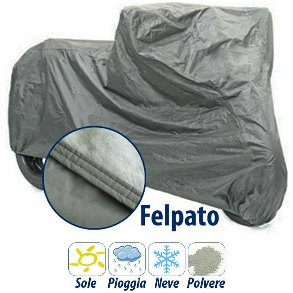 Telo coprimoto felpato telo copri moto felpato realizzato in materiale impermeabile al 100% e mantiene fresco all interno, protegge dall inquinamento e dai raggi uv. Doppia cucitura per una maggiore resistenza. Elastico alle 2 estremità per una maggiore adattabilità. L'interno del telo è felpato per evitare di graffiare la moto o lo sooter. Copre il veicolo da: pioggia, neve, sole, resina.