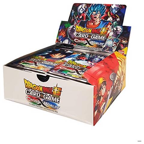 Booster box tcg di dragon ball super series 3 cross worlds totale: 217 tipi 24 pacchetti per scatola, 12 carte per 1 pacchetto 1 pacchetto include 8 comuni, 3 non comuni, 1 rara o superiorerarità comune: 60 tipi (versione normale o foil) non comune: 30 tipi (versione normale o foil) raro: 18 tipi super rara: 14 tipi rara segreta: 1 tipo rara speciale: 4 tipi.