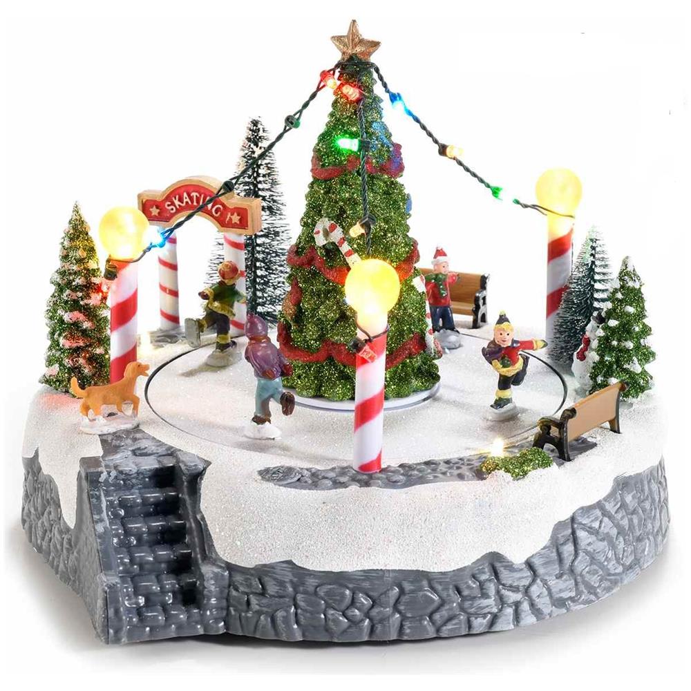 Elegante carillon a forma di pista di pattinaggio con paesaggio natalizio, pattinatori in movimento, luci e suoni curato nei minimi dettagli, realizzato in resina una splendida decorazione indicata sia come idea regalo per grandi e piccini, sia per addobbare la casa creando una magica atmosfera natalizia dimensioni base 22 x profondit? 24 x altezza 17,5 centimetri richiede 3 batterie stilo non ...