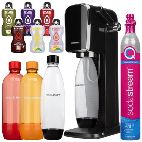 Sodastream Art Saturator Black 1 Bottiglia + 2 Bottiglie Sodastream Arancio E Rosso + Bolero