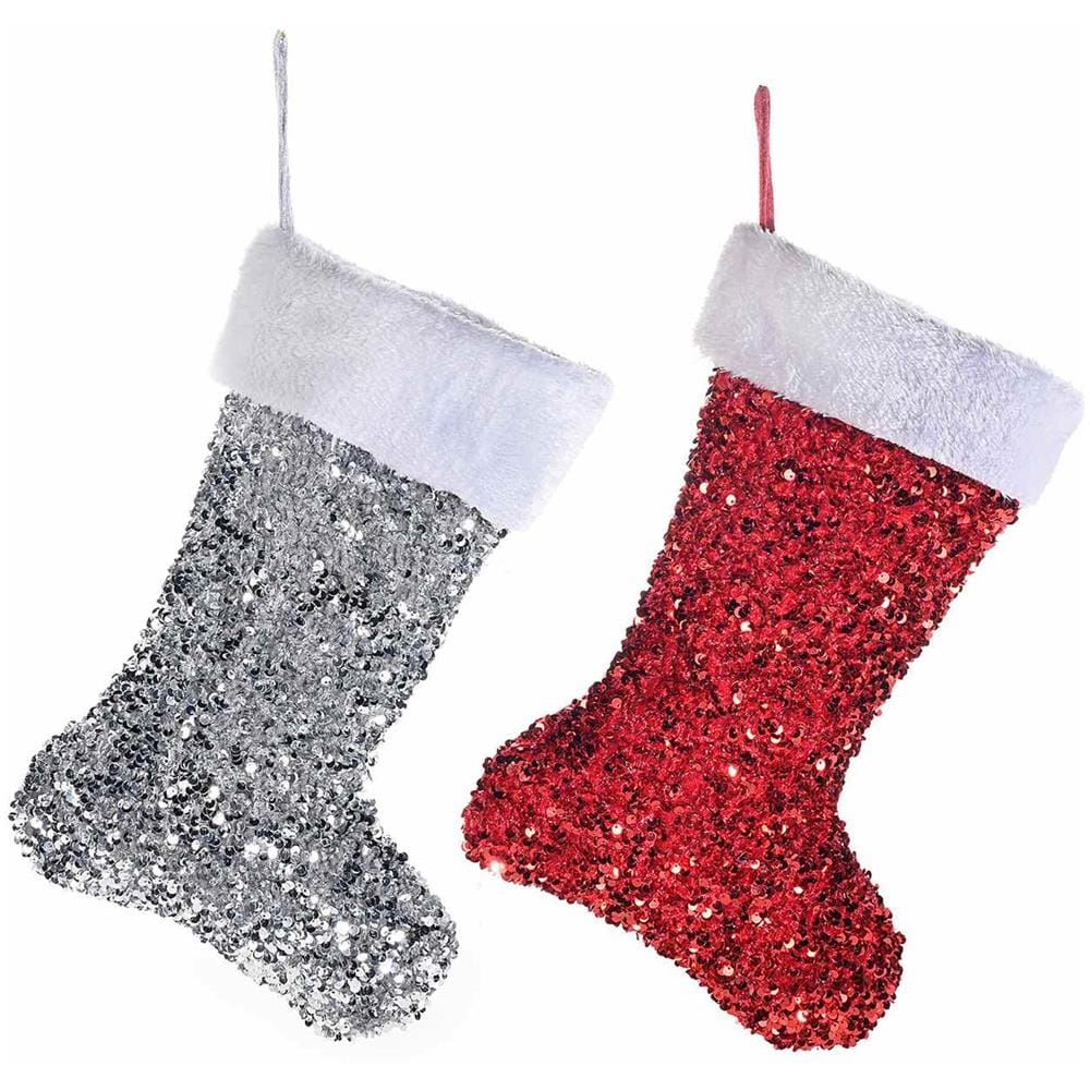 Calze Natalizie Porta Doni E Dolciumi Con Paillettes Sei Pezzi Assortiti