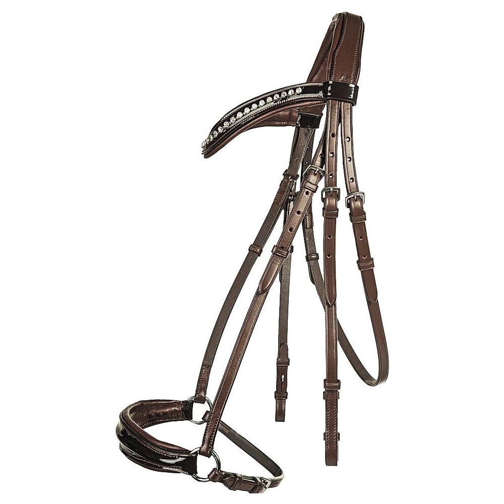 Briglia modello carolin in cuoio bovino frontalino con strass e imbottitura morbida marca: hkm taglie: cob, full, pony colori: marrone, nero, nero/bianco - cuoio bovino - nasalina e sopratesta imbottiti - guarnizioni stabili, colore argento - capezzina tedesca (hannoverana) - frontalino imbottitura morbida - frontalino con diamanti sintetici - briglie con fibbiere in cuoio - nasalina e frontali...