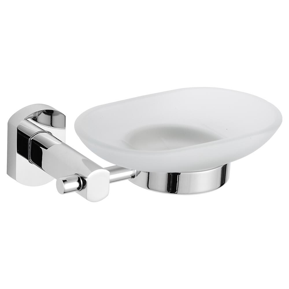 Accessorio da bagno da utilizzare come porta sapone saponetta semplice da applicare alla parete materiale: ottone cromato piattino porta sapone in vetro satinato la confezione include il materiale per il fissaggio.