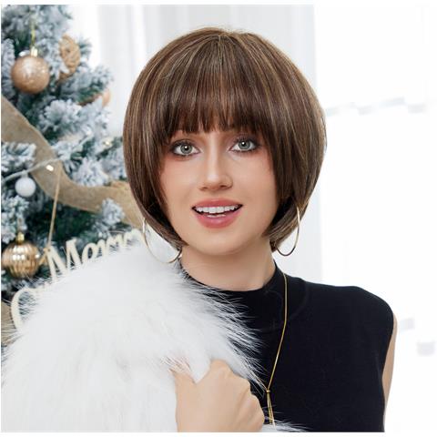 Parrucca Corta Chic Con Fasce Da Donna, Regolabile E Traspirante Brown
