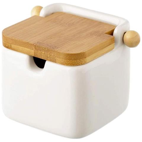Zuccheriera Barattolo Ceramica Tappo Legno Bambu Sale Zucchero Caffe 0,7lt Bianc