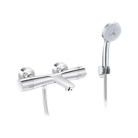 Dx 243-206dianhydromiscelatore termostatico vasca esterno mod. Janecromomiscelatore termostatico esterno per vasca completo di kit doccia composto da doccetta, flessibile e supporto a muro. Temperatura massima 50°c. Pressione massima 3,5 bar.