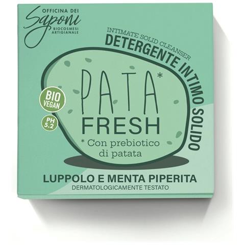 Officina dei saponi pata-fresh detergente intimo solido luppolo e menta piperita vegano 55 gr il pata-fresh di ""officina dei saponi"", è un detergente intimo delicato. Ha un'azione riequilibrante grazie al prebiotico di patata ed è utile per la cura e la pulizia dell'epidermide, nutrendo in modo delicato anche la pelle più sensibile. nella sua formulazione troviamo l'estratto di luppolo, in gr...