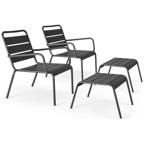 Set Di 2 Poltrone Relax Con Poggiapiedi In Metallo Grigio - Palavas