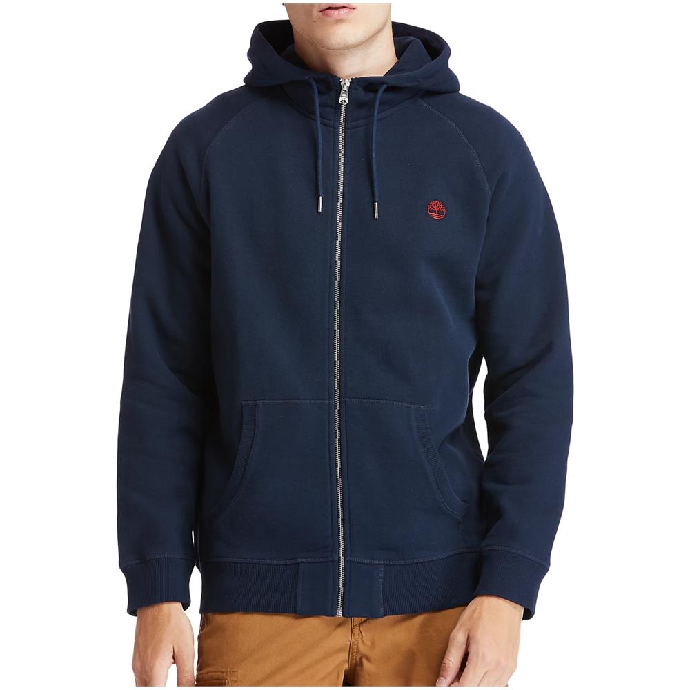 Timberland felpa da uomo con cappuccio e zip exeter river blu - a2bnb433 felpa da uomo in tessuto di pile con zip e cappuccio, rifinita con interno spazzolato per un comfort e un calore ottimali. Modello con zip a tutta lunghezza sul davanti, perfetto per un abbigliamento a strati nei mesi invernali e autunnali. Due tasche a marsupio sul davanti e logo timberland® ad albero ricamato sul petto. ...
