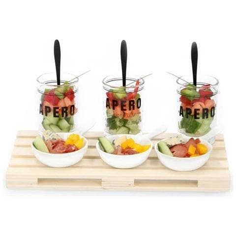 Set Aperitivo Vassoio Pallet + 3 Ciotole + Bicchieri e Cucchiaini Stuzzichini