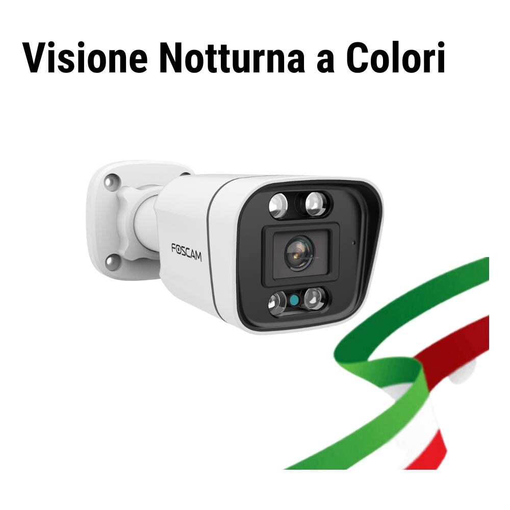 Telecamera ip poe da 4 mp per esterni con 4 faretti e sirena - foscam v4ecla telecamera ip poe foscam v4ec è dotata di 4 faretti con led ir per offrire una visibilità eccezionale in ambienti con scarsa illuminazione. Sia di giorno che di notte, cattura immagini di alta qualità grazie all'obiettivo 2k qhd da 101,5° (angolo diagonale) e alla visione notturna a colori da 20 metri.non appena viene ...