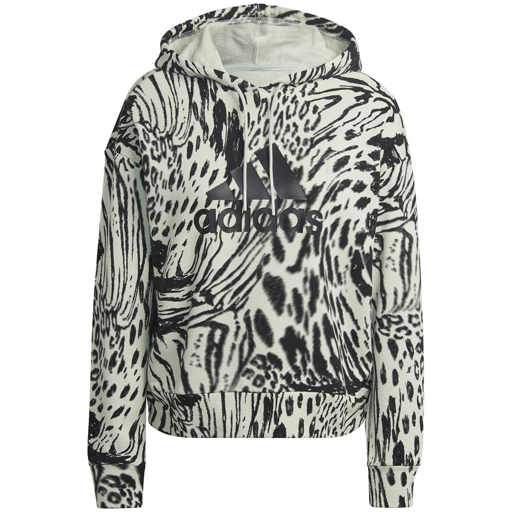 Adidas introduce la Hoodie Donna Future Icons Animal Print.Un capo decisamente poco minimal e molto appariscente nello stile che sa come farsi guardare.La sua struttura in spugna di cotone ti assicurerè  un comfort ottimale sia per una corsa nel parco che per le serate di relax davanti alla TV.Questa Felpa Adidas Future Icons Animal Print fa parte della better cotton initiative in supporto di u...