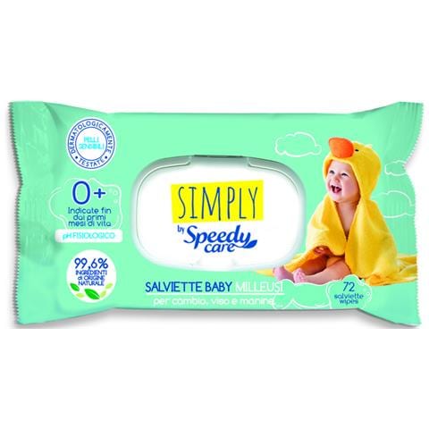 Speedy care simply 72 salviette baby milleusi, per cambio, viso e manine.
