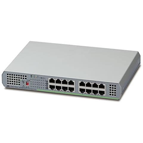 Allied Telesis GS910/16. Tipo di interruttore: non gestito. Tipo di porta Ethernet RJ-45 di commutazione di base: Gigabit Ethernet (10/100/1000). Numero di porte Ethernet RJ-45 di commutazione di base: 16. Porta di console: RJ-45. Full Duplex. Rubrica MAC: 8000 ingressi. Capacità di commutazione: 32 Gbit / s. Standard di rete: IEEE 802.3, IEEE 802.3ab, IEEE 802.3az, IEEE 802.3u, IEEE 802.3x.