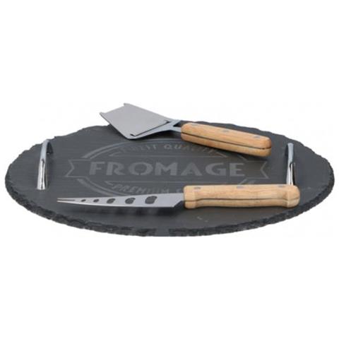 Set Tagliere Per Formaggi Rotondo 3 Pezzi 30 Cm Nero / marrone