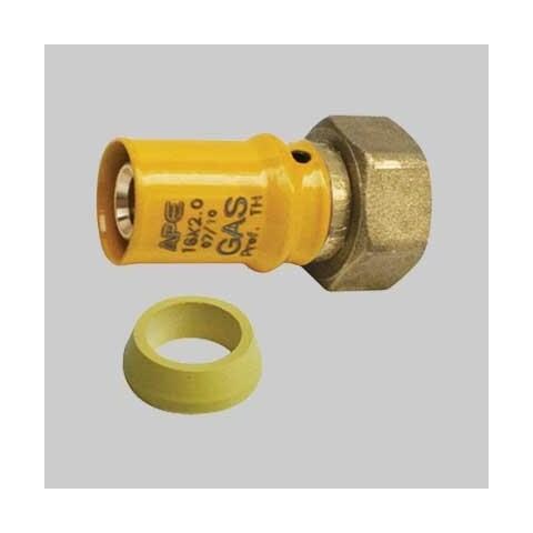 Raccordo con girello per gas sede piana (ap 685) 20 x 3/4. Raccordo a pressare per tubo multistrato. Gli articoli sono dotati di doppio o-ring di tenuta, più anello in pe per eliminare eventuali correnti vaganti. I raccordi vengono utilizzati in impianti di adduzione gas conformi alla uni /ts 11343. Campo di temperatura: da -20°c a 70 °c - pressione di esercizio: mop 5 - profili di pressata: pr...