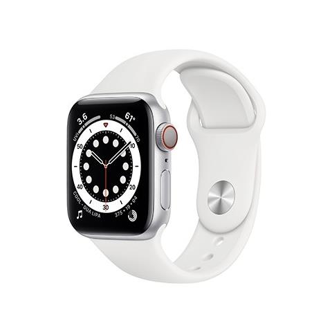 Watch 6 40mm Impermeabile 5ATM GPS + Cellular WiFi / Bluetooth con Cassa in alluminio Argento e Cinturino Sport Regular Bianco