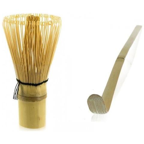 Frusta e cucchiaio in bambù per tè matcha. La frusta tradizionale matcha, o chansen, è composta da un singolo pezzo di bambù dorato. È una frusta con 100 fili, che consente di ottenere una perfetta emulsione di tè matcha. La frusta matcha è essenziale per una cerimonia del tè giapponese e per preparare il tè matcha battuto. Dopo aver versato il tè in polvere e poi l'acqua calda, sbattere la pre...