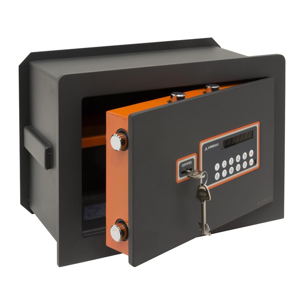 Plus C 181040 Cassaforte A Muro Con Serratura Certificata A Chiave E Codice | Cassaforte Da Incaso A Parete Con Fondo Estensibile | Alto Livello Di Sicurezza | 27 X 38,5 X 20/30 Cm | 11 A 19 L