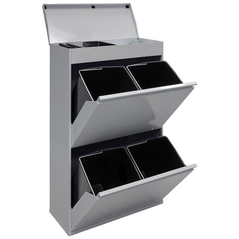 Top Cr622-b Pattumiera Per Raccolta Differenziata Con Ripiano Superiore Multiuso, 4 Secchi, Mobile D'acciaio Per Differenziata, 4 X 17 L (68 L), Grigio Chiaro