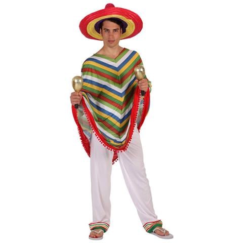 Questo costume da messicano è per adulto. Comprende un paio di pantaloni bianchi e bordino colorato ed un poncho morbido e molto colorato con bordino rosso e piccoli pompon (sombrero, maracas e sandali non inclusi). Ideale per la tua festa a tema!.