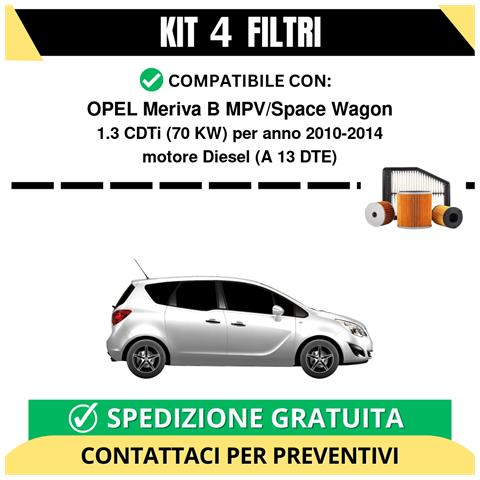 Kit 4 Filtri Tagliando Per Opel Meriva B Mpv/space Wagon 1.3 Cdti 70 Kw Diesel 2010-2014