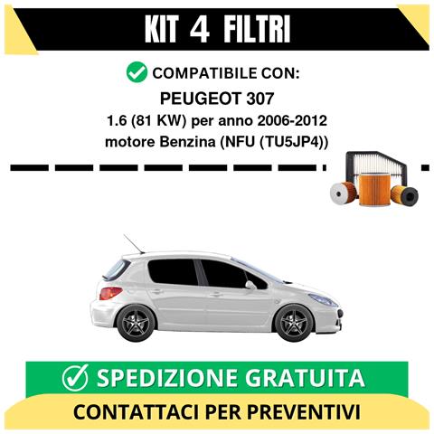 Kit 4 Filtri Tagliando Per Peugeot 307 1.6 81 Kw Benzina 2006-2012