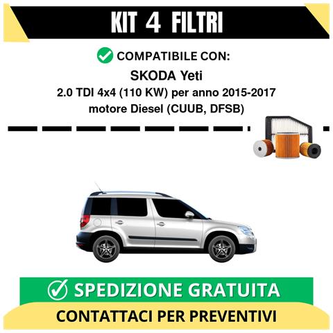 Kit 4 Filtri Tagliando Per Skoda Yeti 2.0 Tdi 4x4 110 Kw Diesel 2015-2017