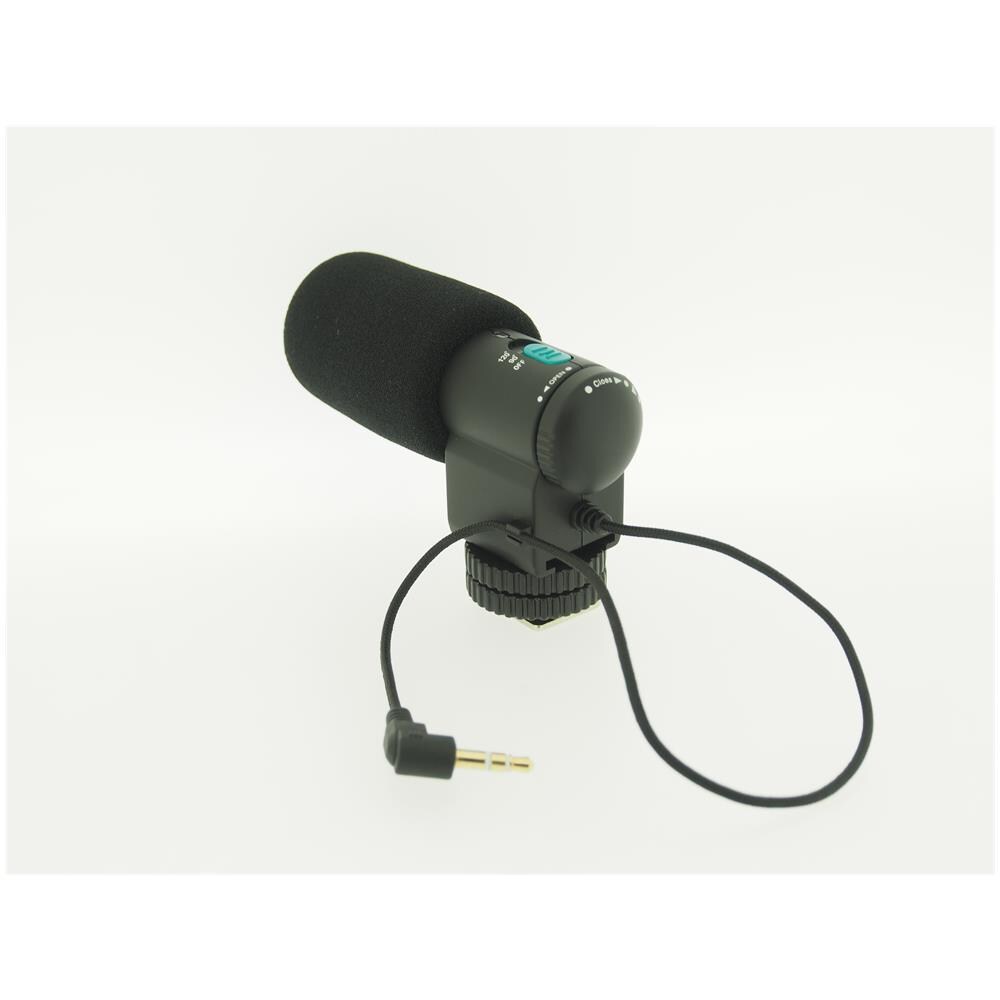 Microfono stereo esterno per le sue registrazioni con una superiore qualità audio. Ideale per le sue registrazioni. Questo microfono di qualità è adatto alla maggior parte delle fotocamere e videocamere con connessione standard ""hot shoe"" e ingresso audio e per questo motivo può essere anche utilizzato con fotocamere slr. Con questo microfono stereo a batteria è possibile migliorare significa...