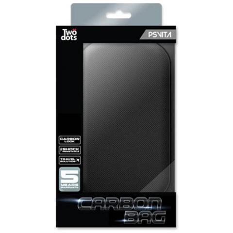 Elegante e pratica custodia per PSVita con finitura effetto fibra di carbonio. Include un moschettone in alluminio nero per agganciarla, ed è dotata di una comoda tasca interna per il trasporto di giochi e schede SD.