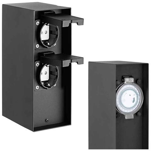 Colonna Elettrica Giardino Palo Colonnina 2 Prese Shucko + Programmatore Timer