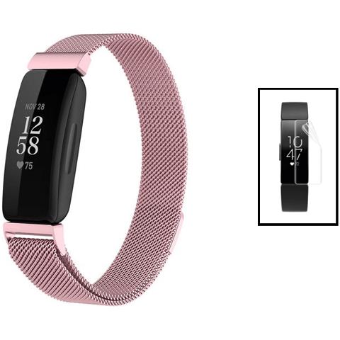 Kit Di Braccialetto Milanese + Film Per Gel Di Copertina Per Fitbit Inspire 2 - Pink / Transparent
