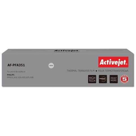 Activejet AF-PFA351. Produzione pagine: 140 pagine, Colori di stampa: Nero, Compatibilità: Philips Magic 5 Voice Series: PPF-620, PPF-631, PPF-631E ECO Sagem, PPF-632, PPF-650, PPF-675,.... Larghezza: 213 mm, Lunghezza del nastro: 45 m. Quantità per pacco: 1 pz