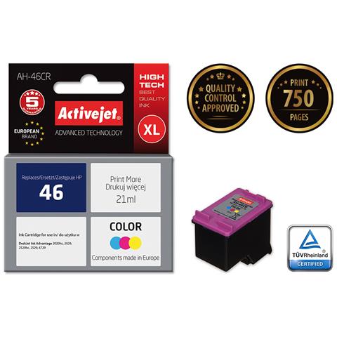 Activejet AH-46CR. Tipo di inchiostro a colori: Inchiostro a base di pigmento, Tipo di cartuccia: Resa elevata (XL), Volume dell'inchiostro nero: 35 ml, Volume dell'inchiostro a colori: 21 ml, Colori di stampa: Ciano, Magenta, Giallo, Quantità per pacco: 1 pz