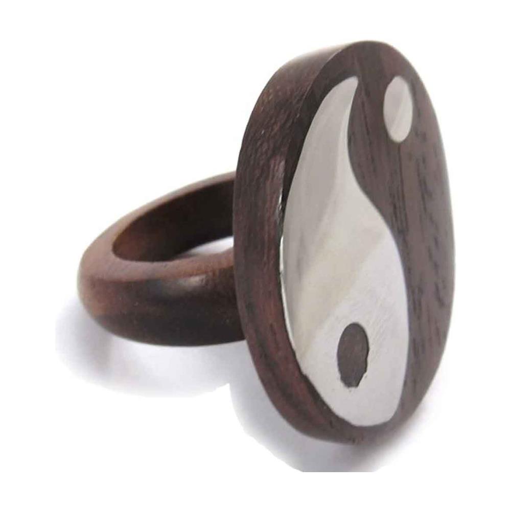 'french touch' anello 'Yin Yang' legno - [ J8029]