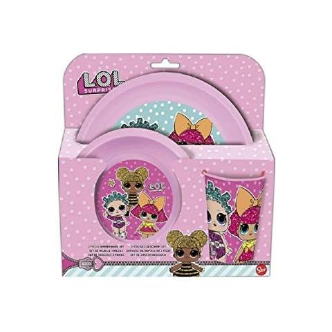 Set piatti e bicchiere per bambina con personaggi di l. o. l surprise! sorprendi la tua bambina con questo set composto da piatto piano, piatto fondo e picchiere con i suoi personaggi preferiti della fantastiche bamboline l. o. l surprise.
