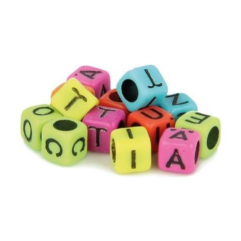 300 Perline Alfabeto Quadrate 6 Mm - Colori Neon