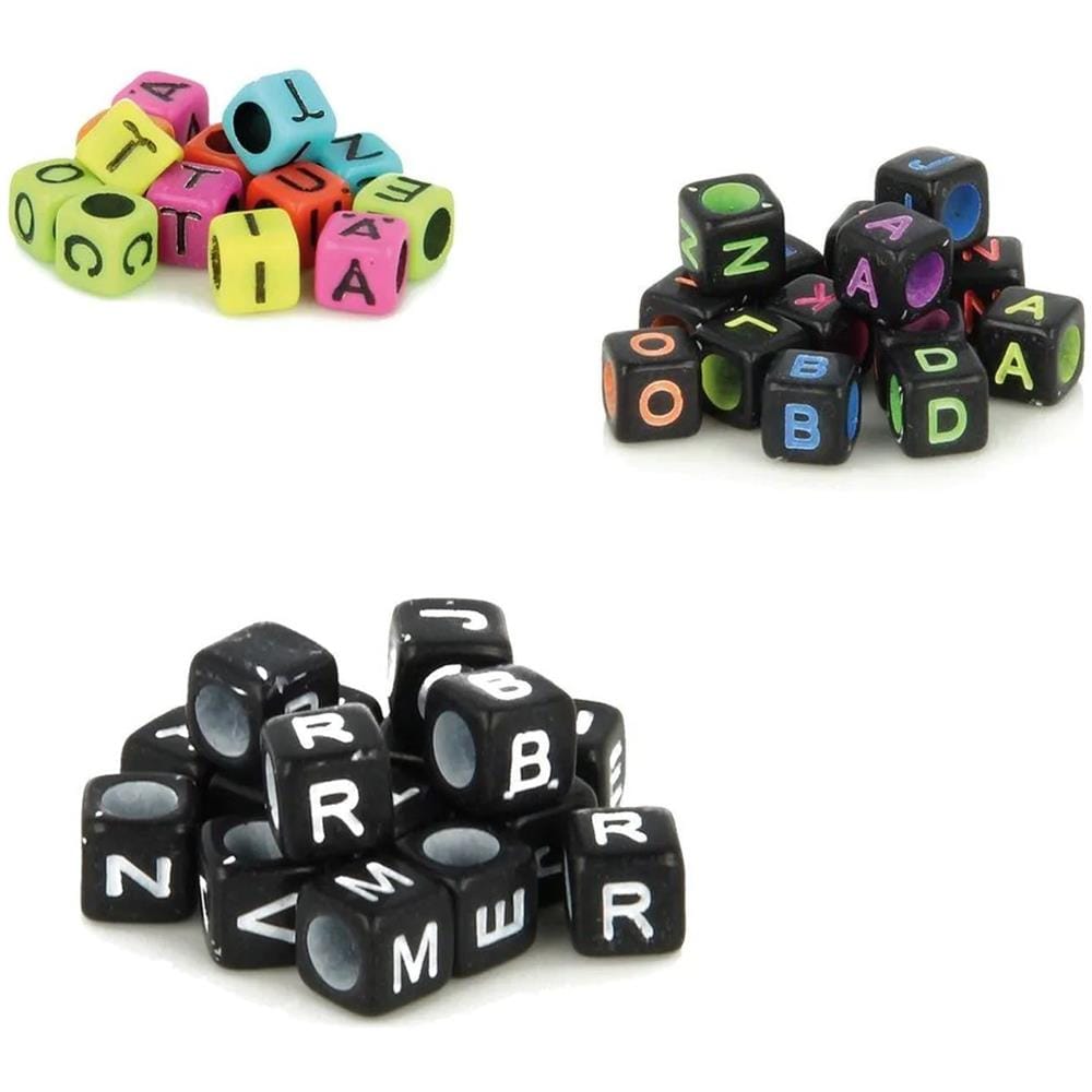 900 Perline Quadrate Alfabeto 6 Mm - Fluo, Bianco E Nero