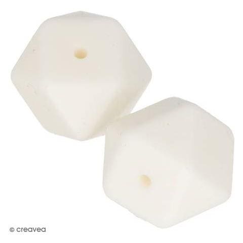 Confezione da 2 perline esagonali bianche in silicone - 17mm. Con queste perline di silicone, si possono realizzare accessori (ciondoli, collane) da masticare per il vostro bambino. Le perle di silicone aiutano lo sviluppo dei denti.