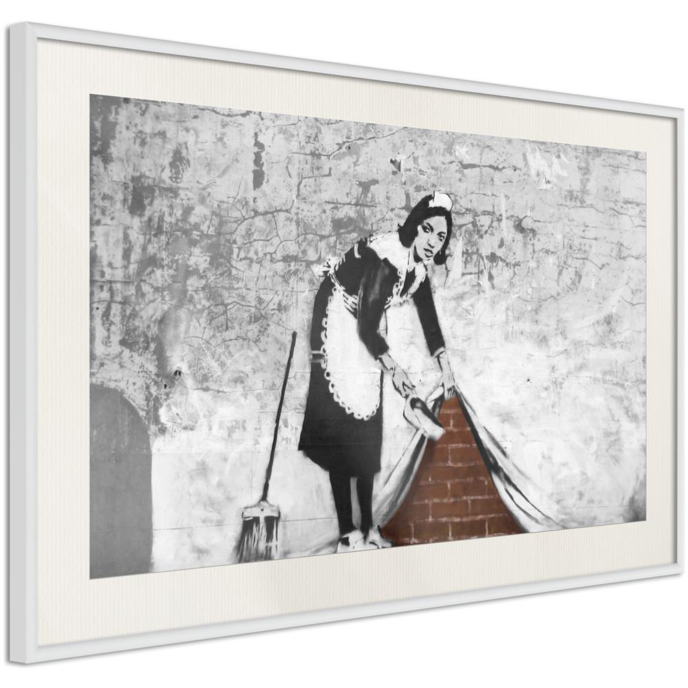 Poster - Banksy: Sweep It Under The Carpet - Cornice Passe-partout Bianca - 60 X 40 Cm