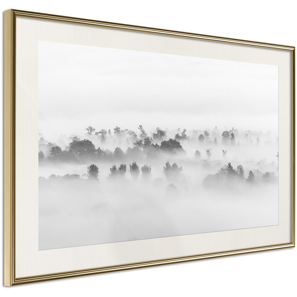 Poster - Fog Over The Forest - Cornice Passe-partout Dorata - 30 X 20 Cm