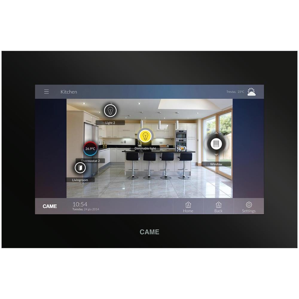 Terminale touch screen da 10” permette il controllo del sistema tramite un’interfaccia grafica semplice e intuitiva. La navigazione avviene tramite menu di comando o tramite mappe grafiche con le immagini dei vari ambienti. Si collega direttamente al server di sistema tramite la rete lan. Predisposto per il funzionamento come posto interno videocitofonico. Dispone di porta usb e slot sd sard pe...
